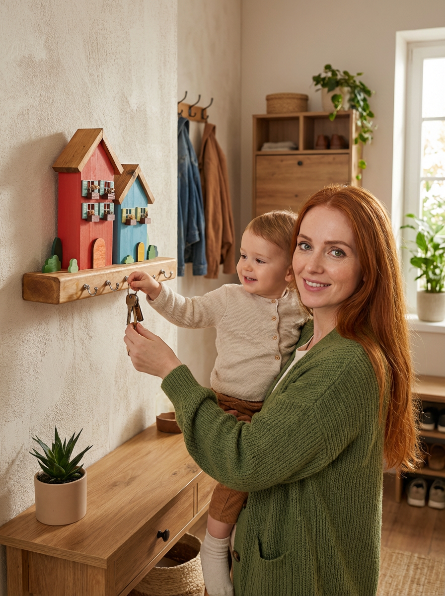 El Yapımı Ahşap Anahtarlık Askılığı – Minyatür Ev Tasarımı