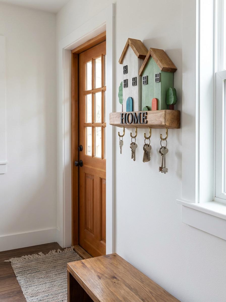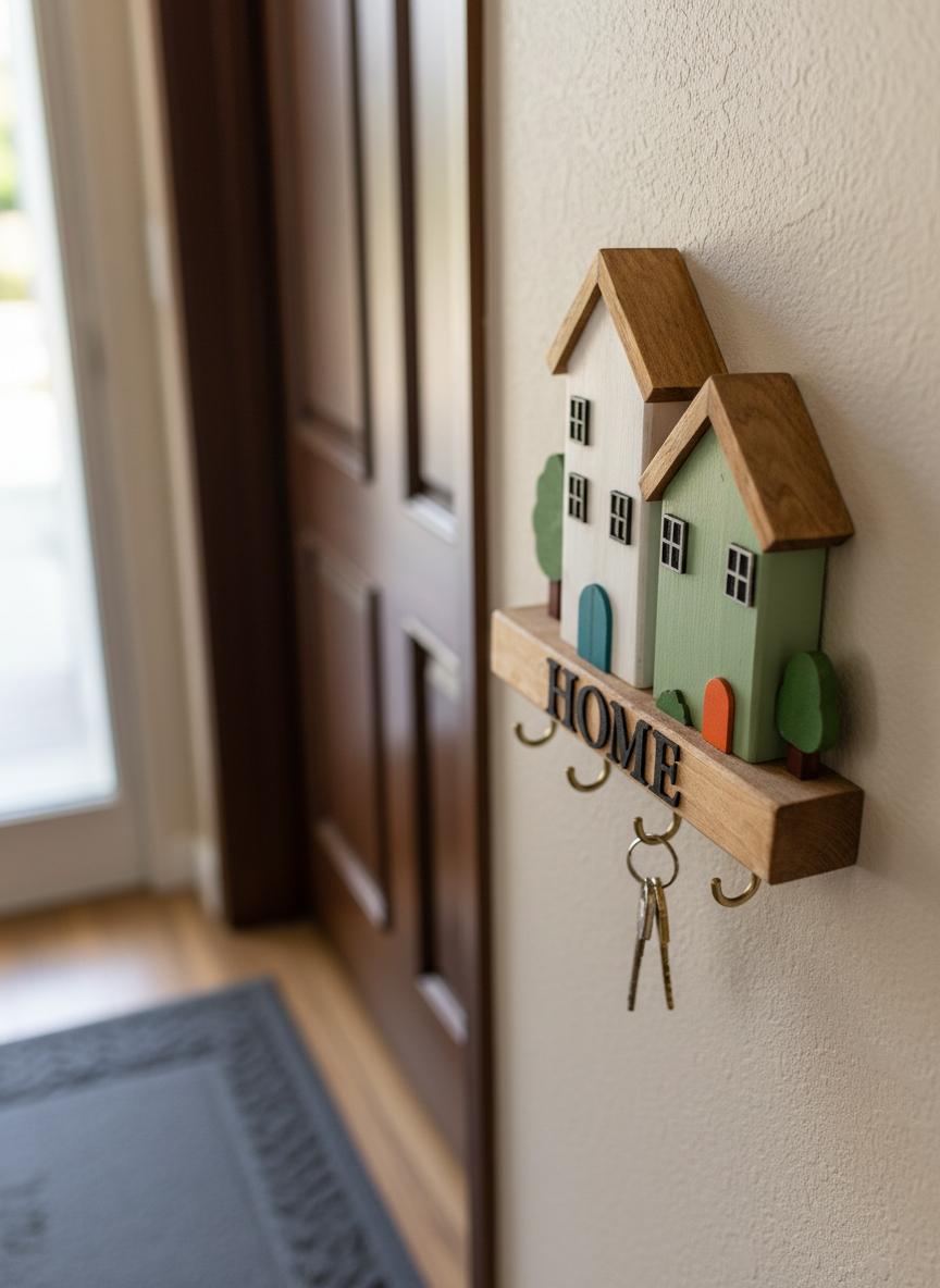 El Yapımı “HOME” Yazılı Ahşap Anahtarlık Askılığı